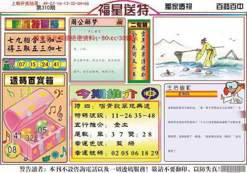 311期:吉凶两肖☣【吉美+牛狗】开:發00中